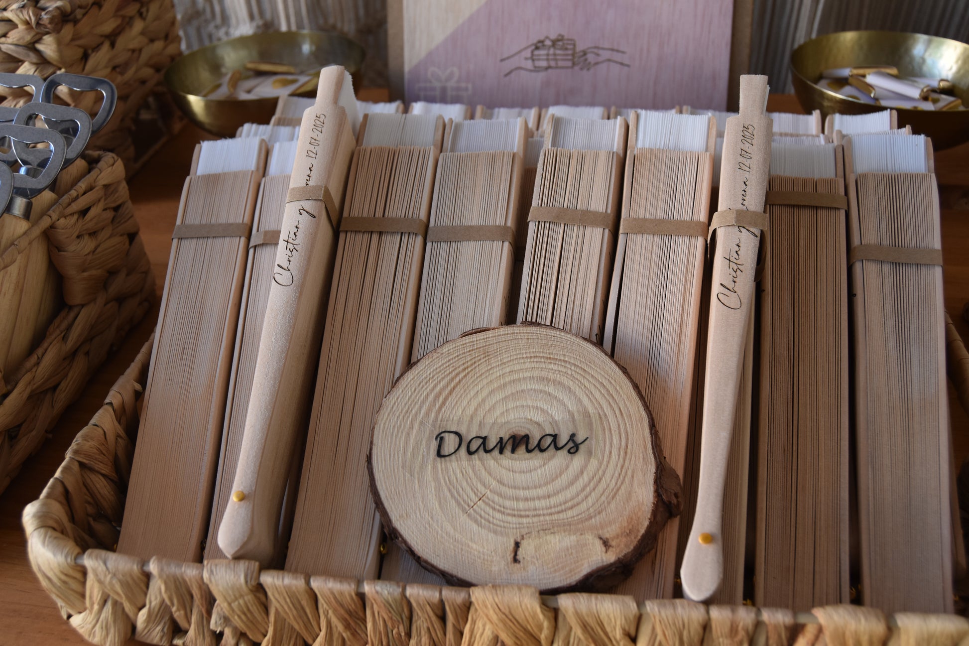 🌿 Abanico de madera natural personalizado – regalo para invitadas 💒