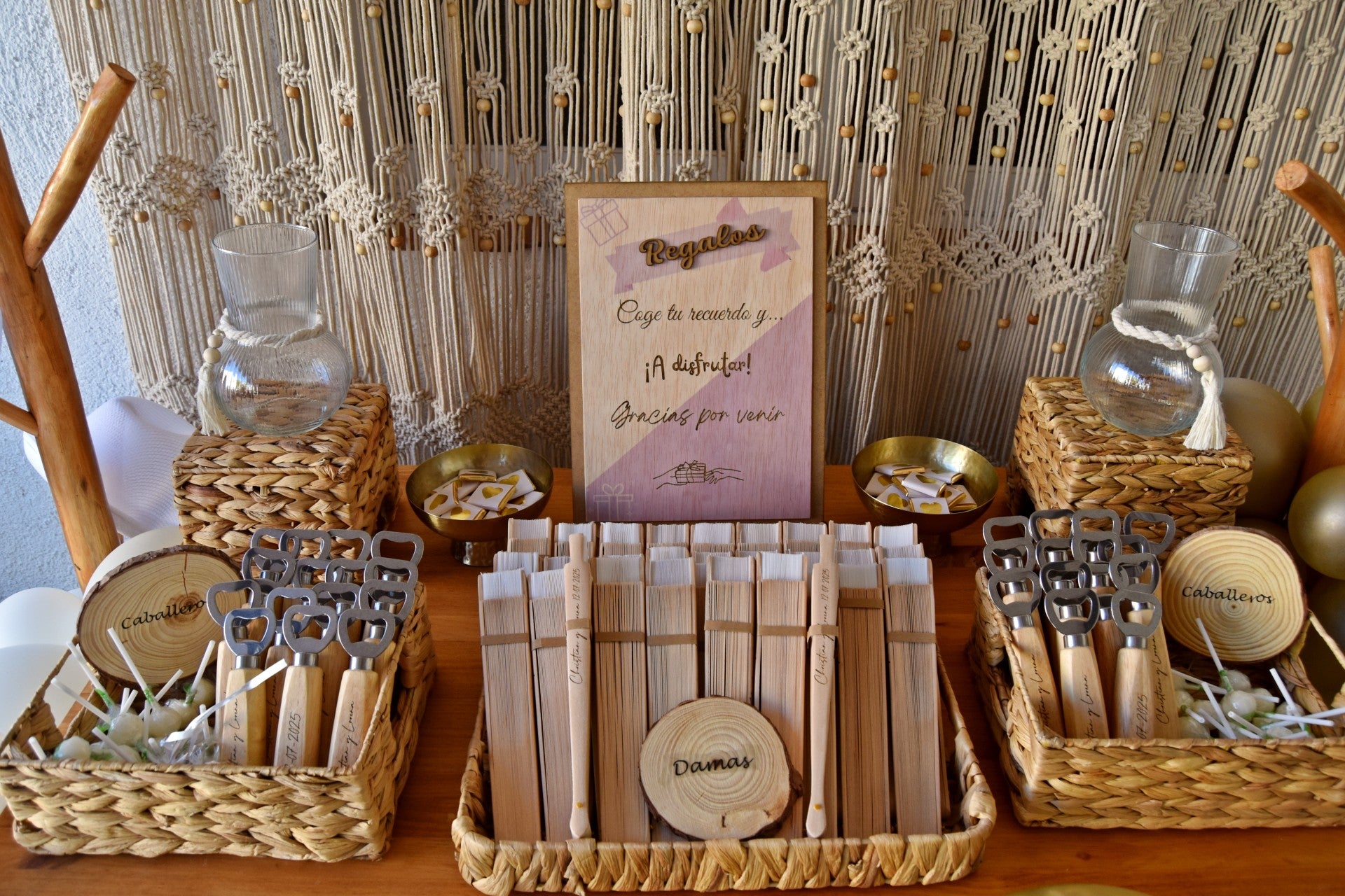 Ideales para señalizar rincones especiales como el candy bar, la barra libre, el photocall o la mesa de regalos 🎁, cada cartel está elaborado en madera natural y se personaliza con nombres, fechas o el mensaje que más te guste.