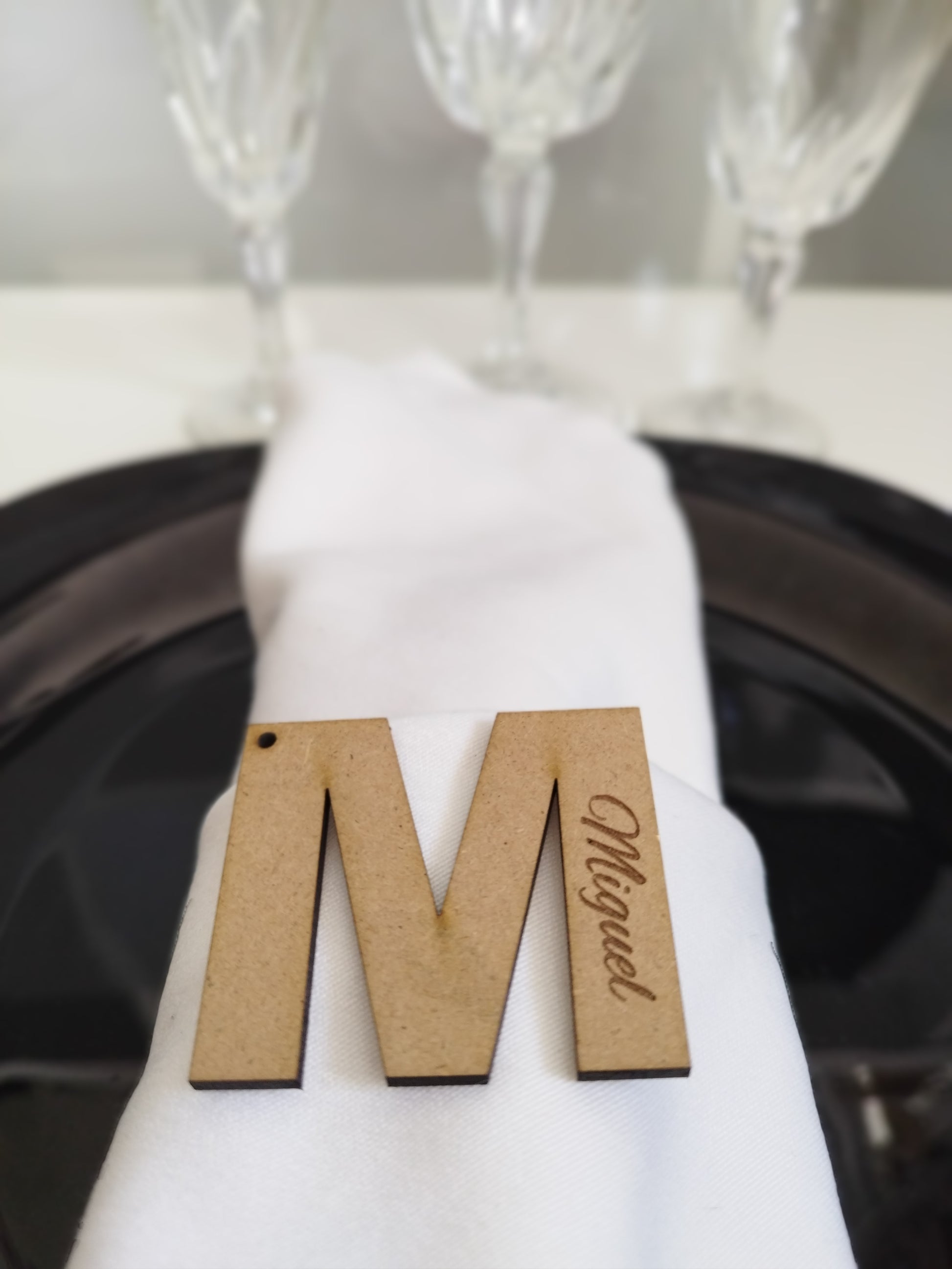 Cada pieza se personaliza con el nombre de tus invitados mediante grabado láser, ofreciendo un acabado limpio, elegante y duradero. Además, se integran fácilmente en cualquier estilo decorativo: rústico, moderno, minimalista o temático.