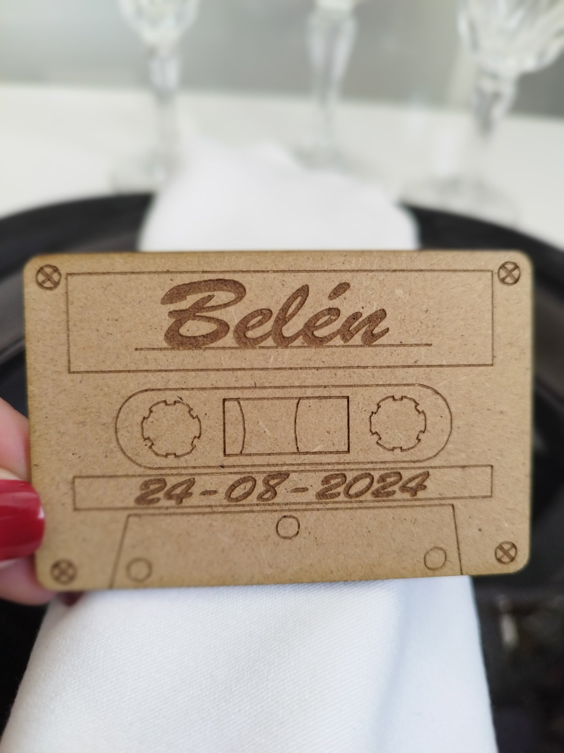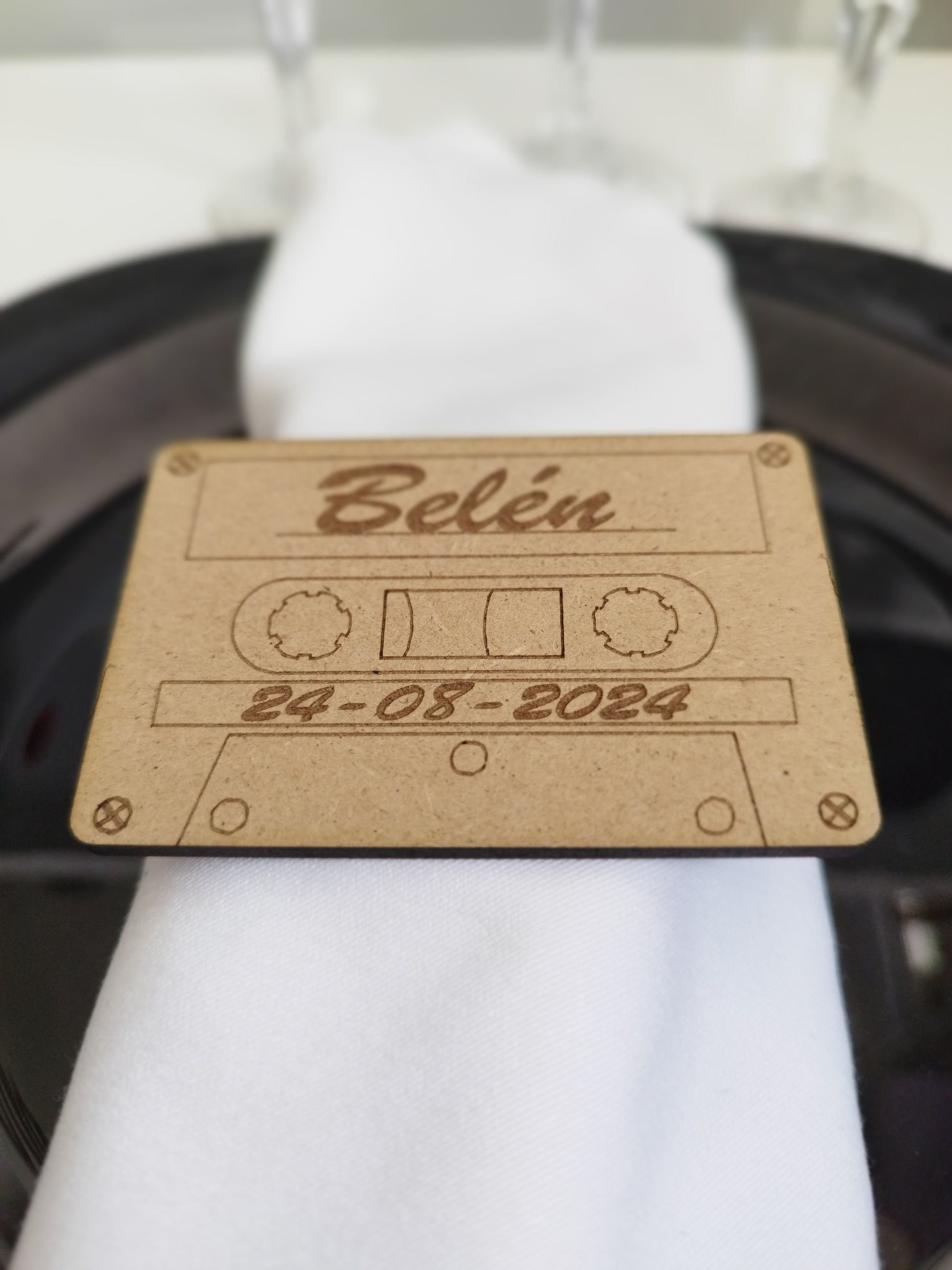 Cada pieza se personaliza con el nombre de tus invitados mediante grabado láser, ofreciendo un acabado limpio, elegante y duradero. Además, se integran fácilmente en cualquier estilo decorativo: rústico, moderno, minimalista o temático.