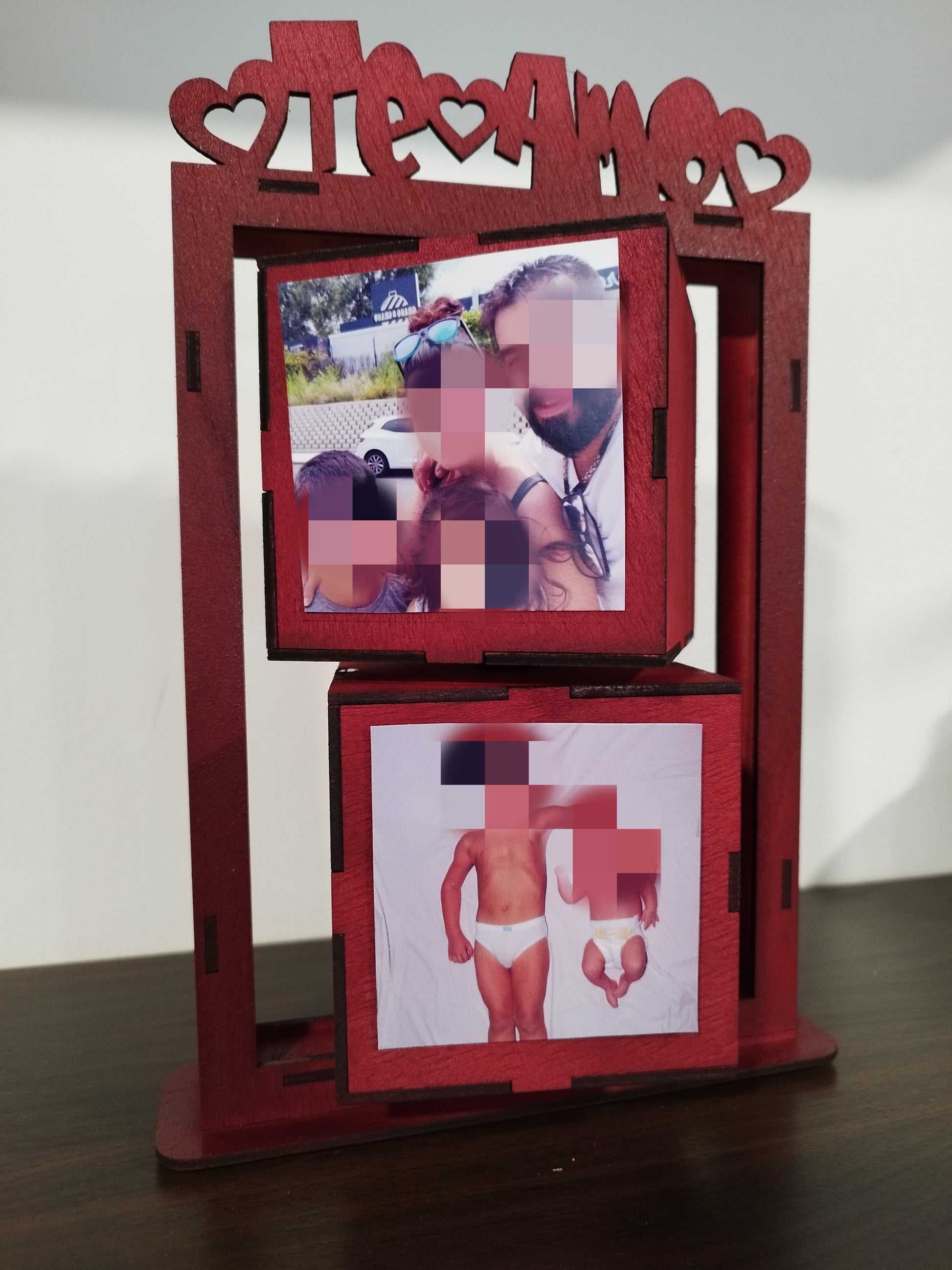 Sorprende con un detalle lleno de amor y significado. Este marco de fotos giratorio personalizado permite colocar hasta 8 fotografías diferentes, creando un recuerdo dinámico y único que gira para mostrar vuestros momentos más especiales.