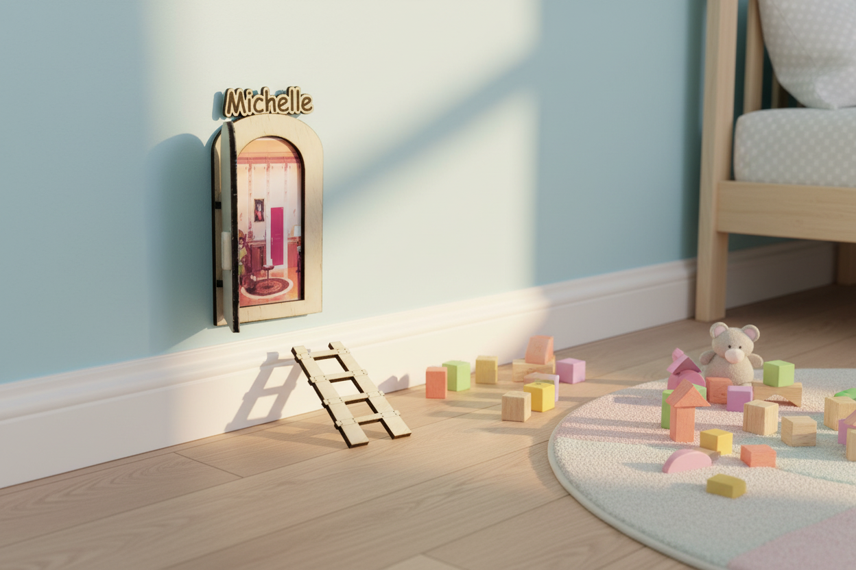 Esta puerta mágica de madera es el detalle perfecto para sorprender a tu hijo, nieto o a ese pequeño tan especial. Un elemento decorativo lleno de encanto que invita a soñar, imaginar historias y creer en la magia.