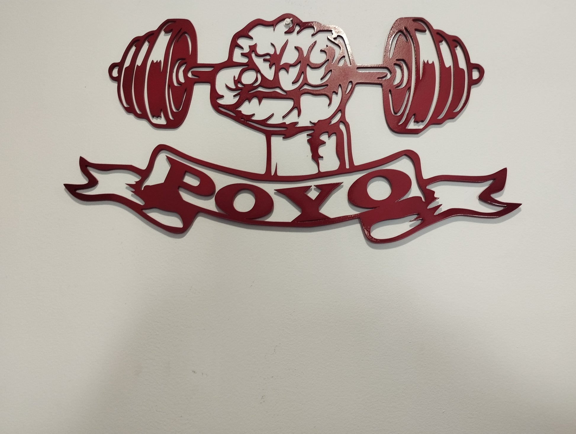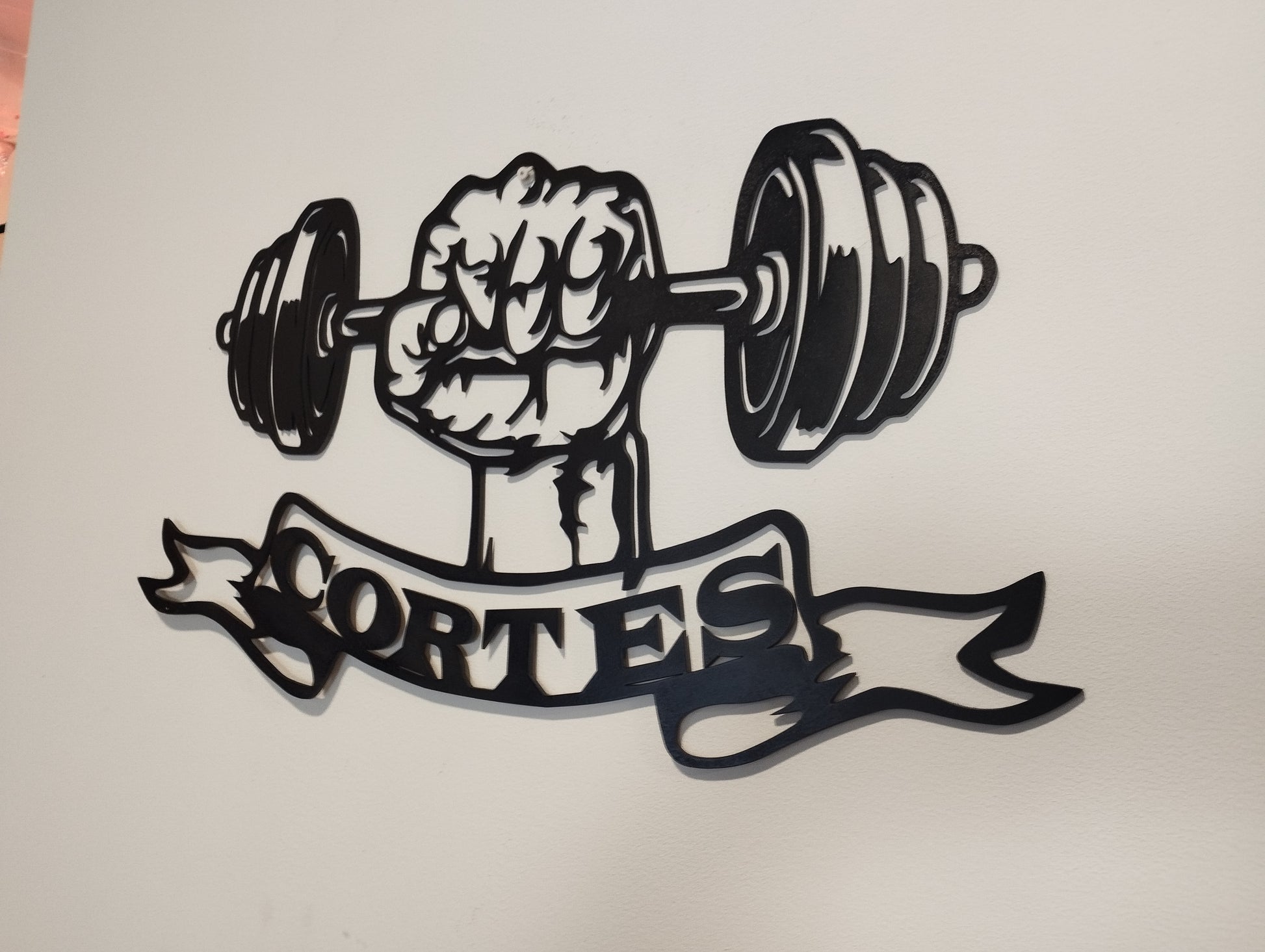 Demuestra tu pasión por el fitness con nuestra silueta de un puño sujetando una mancuerna, hecha en madera y personalizable con nombre para que sea tan única como tu esfuerzo.